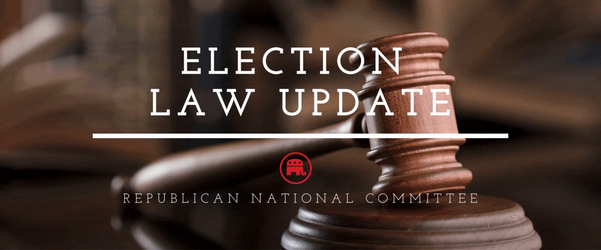 Status: The RNC filed a motion to intervene on July 3 to help the Secretary of State defend against this challenge, which seeks to enjoin the Kansas law and extend the existing receipt deadline from 3 days to 7 days after election day. The State removed the case to federal court, and the RNC’s motion is being held in abeyance.